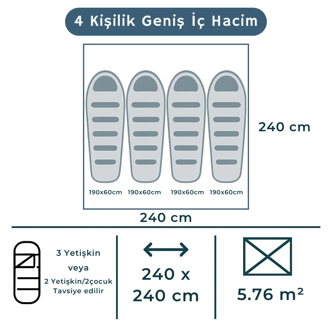 - Kapasite: 3–4 kişi (ideal kullanım)